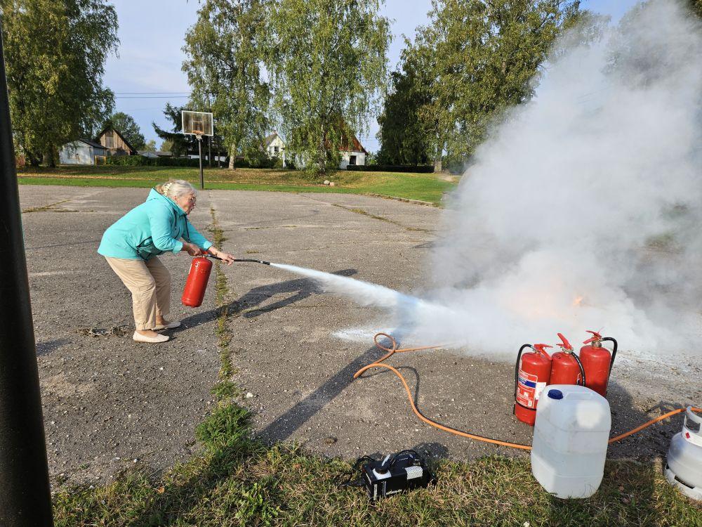 Peale seda hakkasid õpetajad harjutama tulekustutite kasutamist. Tuleohutuse teooria loeng toimus veebikeskkonnas Zoom.
